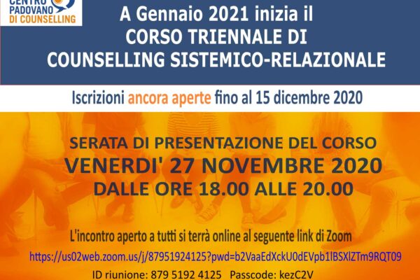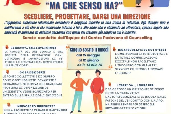 Nello sviluppare le competenze specifiche del Counselling Professionale, il Centro Padovano di Counselling si avvale dei contributi dell’approccio sistemico, degli studi sulla comunicazione e dei modelli sociali di relazione, senza trascurare la centralità della Persona Umana nel suo agire responsabile e orientata verso obiettivi personali di sviluppo.